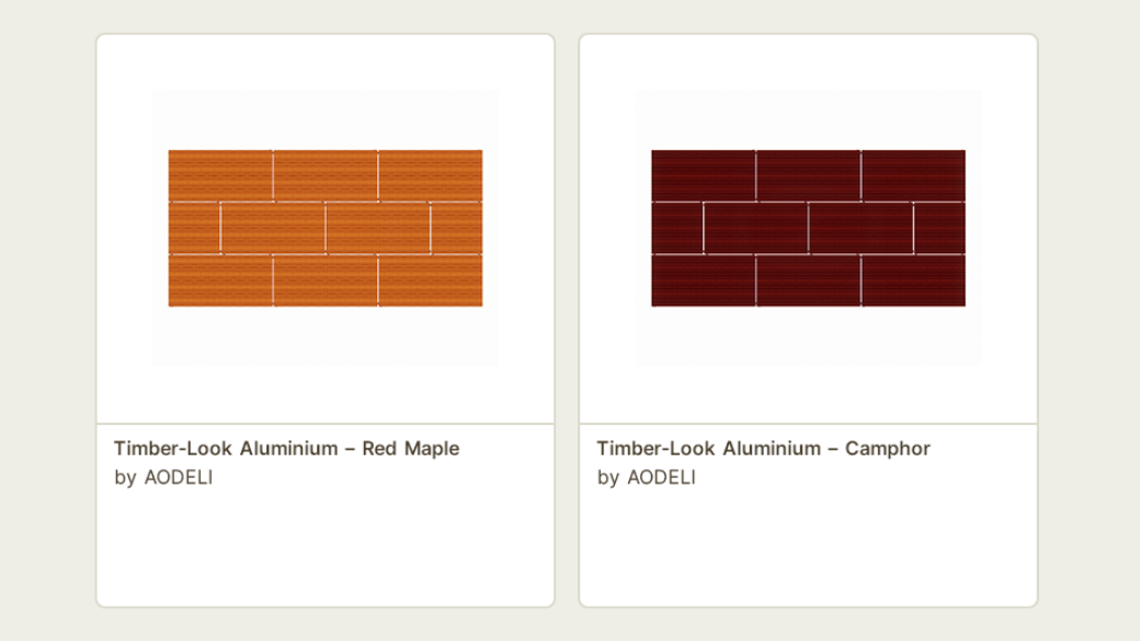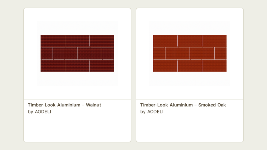 AODELI offers a range of high-quality aluminium façade panels available in realistic timber finishes designed to enhance contemporary architectural projects. These finishes deliver the warmth and character of natural wood while maintaining the durability and performance expected from modern aluminium cladding systems.